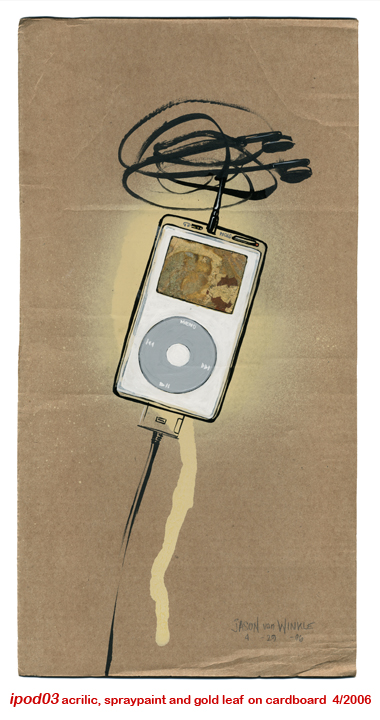 description: acrylic, spraypaint, and gold leaf on cardboard