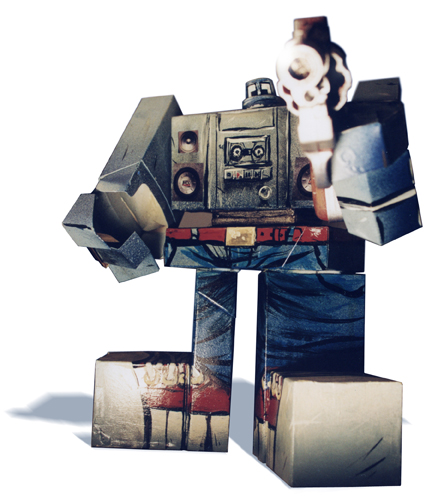 caption: Built from cigarette packs, his arms can rotate and even give the middle finger