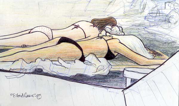 caption: this sketch was drawn from memory. its based on a sketch i did of two girls sunbathing at the newport beach mariott hotel. i liked the original sketch more, but i gave it away. -- **SOLD